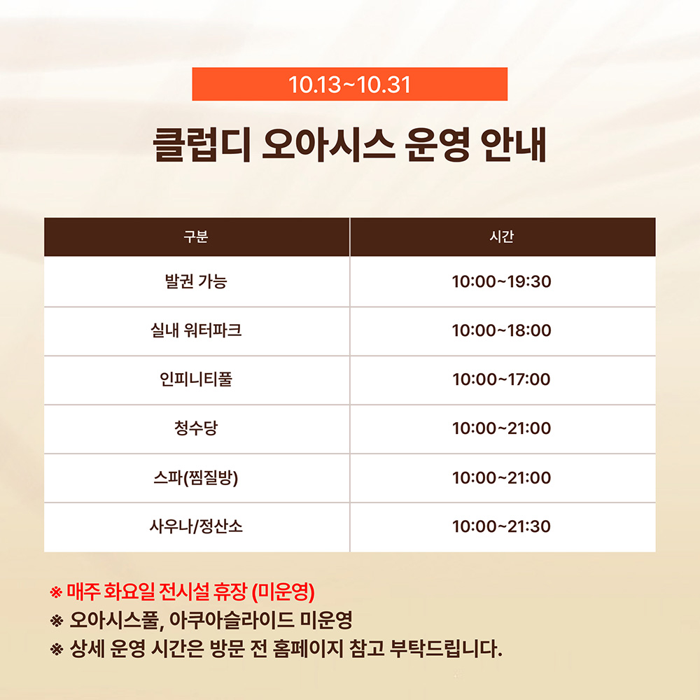 10월 13일~31일까지 입장가능 / 통합권 [워터파크/스파&찜질]