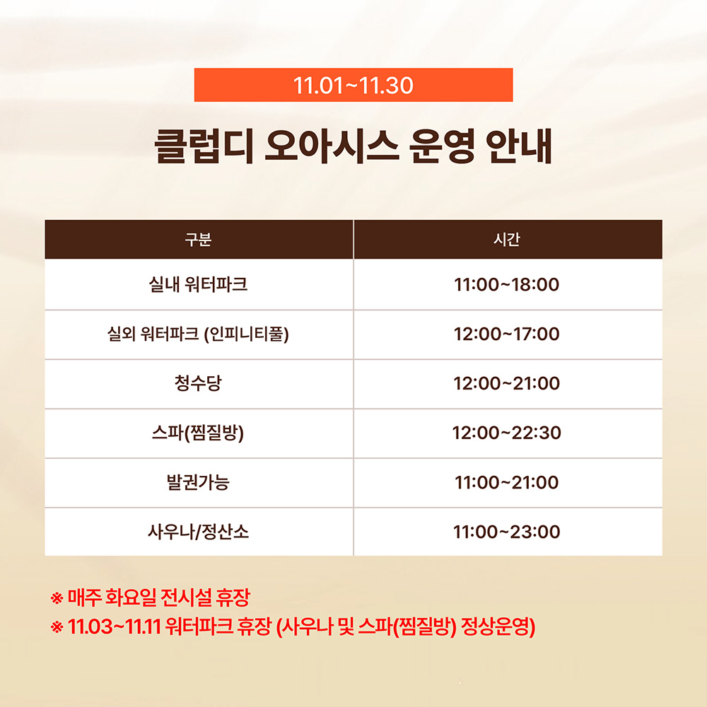 11월 1일~11월 30일까지 입장가능(11/3~11 입장불가) / 통합권[워터파크/스파&찜질]